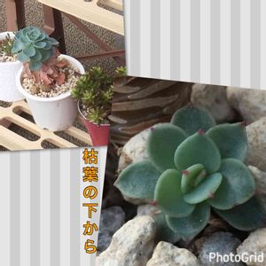 まだ、夏の太陽の時期に、強いお日様にあててしまい、かわいそうな姿にさせてしまいましたが、枯れた下葉を娘の助言で取ったら、下に二世ちゃんがいました。