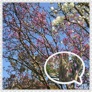お花が咲き誇るいい季節てすね。 家の近くのカフェのお庭で、白木蓮と木蓮がコラボしてました。 こないだ白木蓮をアップさしたので、今日は木蓮をアップに💕
