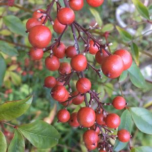 久し振りに実家に帰ってきました🏡 庭にある南天。 赤く紅葉。 やっぱり山の中は落ち着く😌