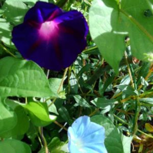 朝のお庭 朝顔が爽やかです 💜💙💜☘️💙💜☘️