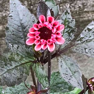 ツルなし朝顔咲きました 斑入りの葉っぱも可愛いです