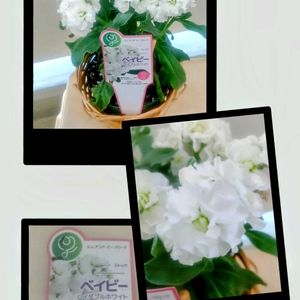 おはようございます 八重咲き ストック ベービー ハイダブルホワイト エム アンド ビー フローラ 純白のお花が魅力的です 園芸店で見つけて買うか買わないか迷っていたのですが、お花の香りを嗅いで迷わず連れて帰りました コンモリとした株姿 矮化剤のおかげかわかりませんが、コンパクトにまとまっています ベランダ園芸 コンパクト園芸 4号スリット鉢