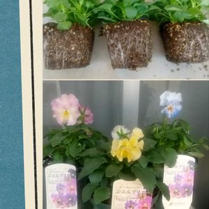 おはようございます フリル咲きパンジー シエルブリエ 花日和 今シーズン初めてのパンビオのお迎えです 今年も近くのホームセンターで購入出来ました 昨年と同じピンク、イエロー、ブルー系の3色 根っ子もまずまず、間延びもしていないので成長楽しみです 1 今年の購入苗 2 昨年の購入苗 ベランダ園芸 コンパクト園芸 4号スリット鉢