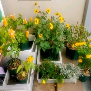 おはようございます 1 ベランダ イエロー大集合 2 ヒマワリ アポロン パキスタキス 3 PWカリラファス PWガザニア 4 ダールベルグデージー マリーゴールド 5 パンジー シエルブリエ 種蒔きヒマワリ ベランダ園芸 コンパクト園芸 2025年11月