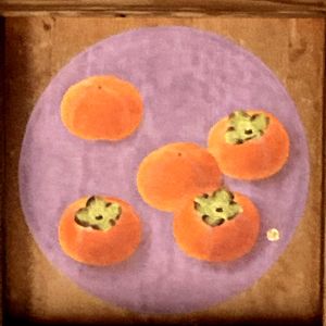 柿の季節🧡🧡🧡🧡 「 今日のお花 カキ 」 この柿は甘いのか...? 渋いのか...? 私には眺めるだけでは分からない 昔は🦪カキは好きでも 柿は嫌いだった いい大人になって 柿の美味しさを知ることに 🧡 ビタミン豊富という所にも惹かれる 年頃...😆👏🧡