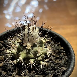 サボテン科 ギムノカクタス属 黒槍丸。😸😸 黒槍丸はメキシコが原産で、白い可愛い花が咲きます。😋 早く花が見てみたいです。(笑)