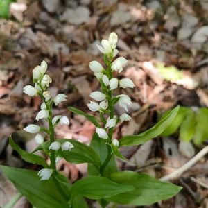 キンランです。 山道から少し離れた場所に 枯れ木や折った枝に隠されて咲いていました。 盗掘を避ける為に、登山者が施してくれているんでしょう。誰にも持って行かれませんように、さらに枝をたして来ました。