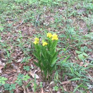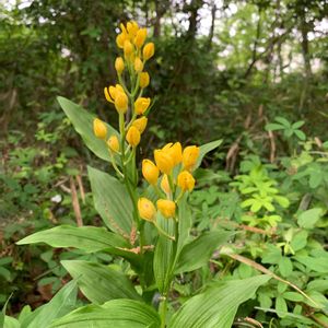 林の中の、花一輪。 緑は濃くなり、夏が近づいて来ました。 黄色が鮮やかなお花🌼 れい様から教えて頂きました→キンラン
