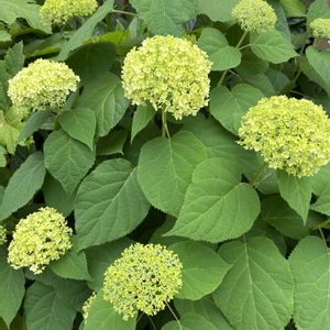 散歩道の紫陽花🐕🐾 ⑥ 💚アメリカ紫陽花💚アナベル💚 アジサイ科アジサイ属 アジサイの多くは「旧枝咲き」といって前年に伸びた枝に花をつけます、葉には光沢があります。 アナベルは「新枝咲き」といってその年に伸ばした枝に花をつけます アナベルの葉は光沢が無く毛が生えており、ザラザラしてます