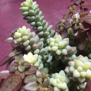 最近お迎えした3種類を、自作リメ缶に 寄せ植えしてみました〜〜(#^.^#)♐️ 白いぷっくりさんが福だるま 黒い子が、くろすけ 手前の子が、桜吹雪