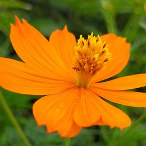 キバナコスモス オレンジだけど咲きました エアコン室外機の突風にいつも耐えています 暑すぎてかわいそう