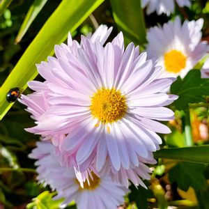 おはようございます☀ ご近所散歩しました。 小春日和が続いて小菊も満開です。 🐞も日向ぼっこしてました。 ③ランタナの実と小菊が混ざった賑やか花壇。