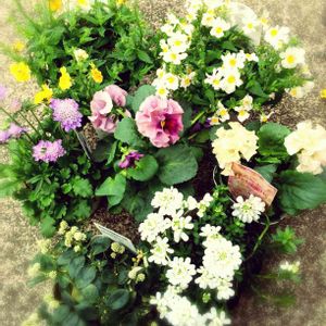 可愛い〜〜💕 お天気がいいので 今日は 寄せ植えしょうと 思い立ち お花屋さんへ 行って来ました🎶 またまた 自分へのご褒美❤️✨ 優しい 色合いの 草花に癒されます💕 この時期の晴れ間は 忙しいけど 楽しいねヾ(๑╹◡╹)ノ"