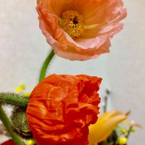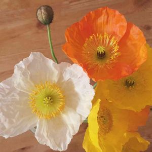 ・ お花屋さんにが「これも持って行きな〜!」とおまけしてくれたポピー。 白のガーベラが目玉焼きみたい ( ¨̮ )⑅* ・