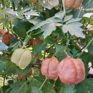 2021.8.6 曇り⛅のち☀️ 今日のお花 [フウセンカズラ] 毎年、種から育て今年は、アサガオと一緒に行灯仕立て。 グリーンとブラウンになったらそろそろ中に種が出来てるかなぁ~😃💕