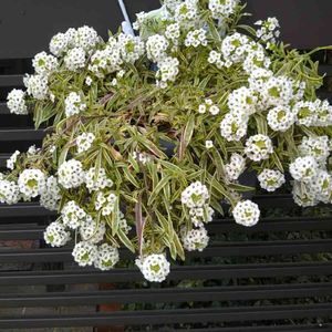 2021*2*17 ☃️少しのち☁️ 【スーパーアリッサム】 今日は、1日中 風がピューピュー吹いて 寒い。朝は、雪もチラホラ。南側から北側 玄関へ。 少し 丸くなって可愛い~😍