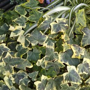 2021*2*25 晴れ☀️ 今日のお花【アイビー(ヘデラ)】 我が家の玄関前に、ずっといます。 後ろのお花を 季節によって差し換えます。 今は、オリヅルランとプリムラジュリアンです。