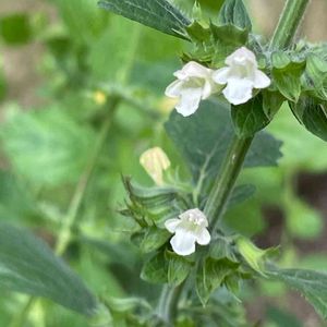 レモンバーム🌱 繁殖力が強く、どこにでも蔓延ってしまうので、さほど世話もしなかったのに、🌼をつけてくれました。 ありがたやー