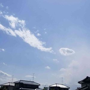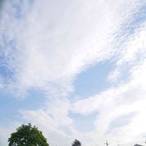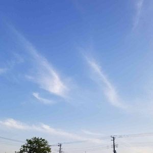 昨日の朝の空です! いろんな方向にシュッシュ! どこを見ても、面白い(@_@) いろんな方向から何枚も写したけど、お蔵入りだね(>_<)と、思ったら、今朝めいさんが昨日の雲の写真を投稿! そうそう昨日の雲は「空の落書き」みたいだった! 同じ空を見上げてた、、、不思議! (私は朝だったけど) カイヅカイブキと樫の木を添えて🎵