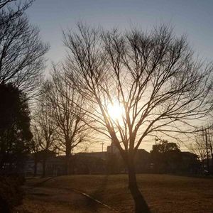 暖かな午後 木を見上げて 大きく伸びてみる (レオと散歩した公園にて)