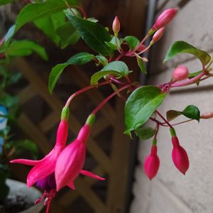ご近所を散歩していたら民家の庭でフクシアをみつけました(*´∀`*) 深い色と可愛い形に癒されてます💜 フラワーエッセンスにあるお花なので見つけて感動です✨