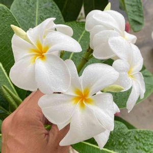 今朝は久しぶりに、まとまった雨となりました😊プルメリア達も天然のシャワーを浴びてイキイキしています。 台風対策を進めています😌
