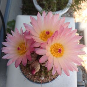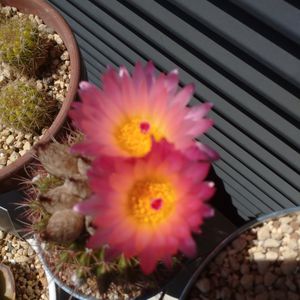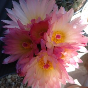 パロディア(ノトカクタス)ヘルテリーです。 もう5年ウチにいますが初めての投稿だと思います。 毎年花は咲いていましたが、不細工なのが1輪とかそんなんでした。 今年は綺麗に咲きました。 眩しいくらいです。