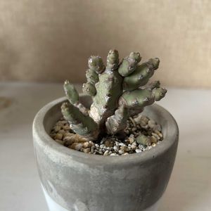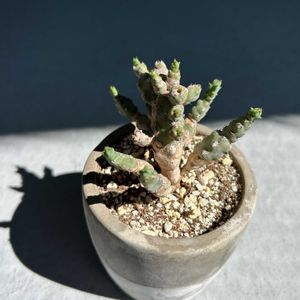 寒さ厳しいですね❄️☃️ いかがお過ごしでしょうか サボテン🌵科の 目立たない子です🤗 「デビリスピナ」 ユーホルビア属 二年位前にHCでお迎えしましたが、半分位無くなり ました😅 以前育てて、黄色い小さな花が咲いて可愛いかったので、リベンジですね 大きく育ちます様に🥰
