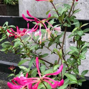 今日も良い天気❣️ハニーサックルの赤❤️ 今日は孫が熱が下がらない!ママが仕事休めない❗️ママからのSOS💧ババが仕事休んで助っ人に…😅 情熱の赤で私も頑張れ👍…😵