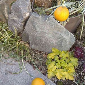 ■未完の庭構想 十数年目 vol.2 ・グレビレア sp ・不知火(デコポン) 処分品コーナーにあったグレビレアともかなり長い付き合いです。しばらくはダメージが抜け切らず、貧弱だった子が、スリット鉢のスリットから根を下ろし、管理人から剪定しろと注意されるくらいに大きくなりました。ここ数年、花は咲かないですけど🙍ベランダの植物や足下のクリスマスローズたちに適度な日陰を作ってくれる貴重な存在なのですか、剪定が大変になってきたので、お別れのときが近いかもしれません。 とにかくデコポンが好きで、中でも特別甘い不知火がうちで食べられたらいいなぁと、景観よりも食欲で植えた不知火も十数年目。数年前までは毎年数個しか実が成らなかったのが、ここ数年は、20~30個は実をつけてくれるようになりました。おそらく、近くに植えていた三角葉アカシアを伐採したので、日当たりが良くなり、栄養分も奪われなくなったのが大きいのかもしれません。ただ、新しい家族が増えた今、食欲優先で仲間入りした不知火さんは、少し浮いてしまっている気もします。もしかすると、別れが近いのかもしれません。 そんなこんなで、我が家で確固たる地位を築いているのは、カシワバアジサイのハーモニーと、ネムノキのサマーチョコレートくらいなんですよね。 出会いと別れを繰り返し、理想の庭作りは永遠に続きそうです。 ※カシワバアジサイと不知火の間にあったシマトネリコは、昨日、お別れとなりました。