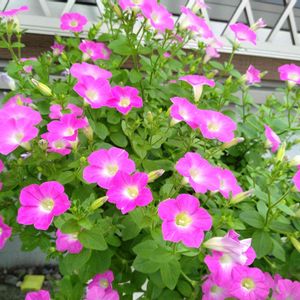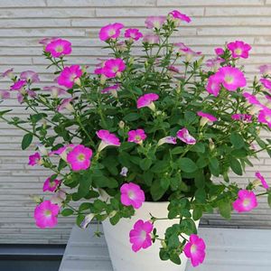 おはようございます🌱 雨です☔ 次男の傘がなくて(学校にある)、車で送っていくはめになりました💦 長男と次男校舎が違うし、子どもを送った帰り道が渋滞なので一仕事です💨💨 picは、ペチュニア マドンナの宝石さん💎 目を引くピンクがかわいいです💗