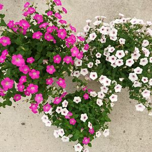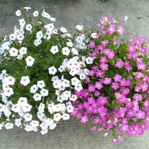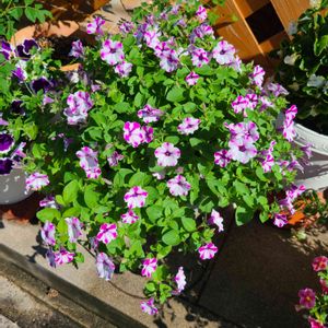 日差しが強くないので、意外と暑くなくて作業が捗りました🎶 ペチュニア マドンナの宝石と、スーパーチュニアビスタ シルバーベリー💠 上が親株で、下が挿し芽っ子です。花の大きさもだいたい同じくらいで、立ち上がって咲くタイプなので混ぜっこして植えました😊