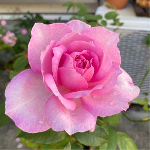 『夢香』さん🌹 2つ目のつぼみが咲きました! ふんわりと♪ すっきりとしたピンクです✨ スーパーベナ「アイストウィンクル」も長ーく咲いてくれています😊