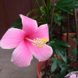 ピンクのハイビスカス、ピンクアイス。 開花してます!もちろんハウスの中ですけどね。
