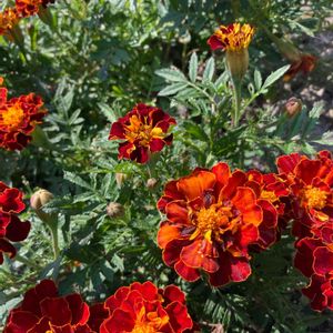 レンタル畑の一角にセンジュギクの集まり 良いなぁ 私も畑を借りてやってみたいなぁ でもやっぱり無理かなぁ、お世話ができないかも ところでマリーゴールドとセンジュギクの区別ができない
