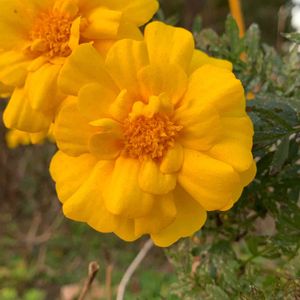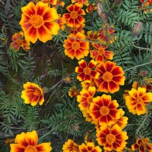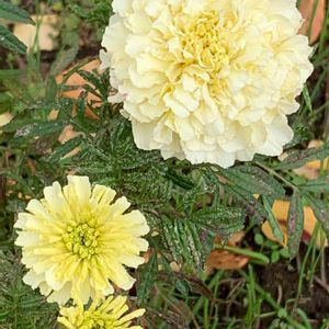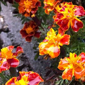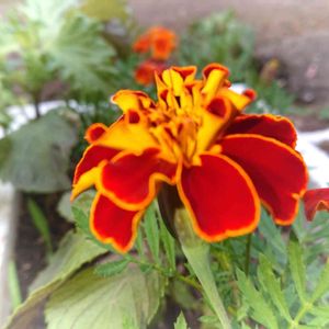 センジュギクとマリーゴールドは、同じ花。?🌸 雨の中☔️炎🔥の様に見えました。