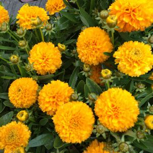 今日のお花「マリーゴールド」( センジュギク )🌿🧡 最近良く見かける大きな丸いマリーゴールドです🤗💕 ( ホームセンターにて撮影 )