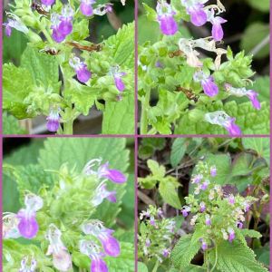 ニガクサ シソ科ニガクサ属 山野の湿って半日陰のような場所に生息。昨年、真鶴半島の森の中で、これとよく似たツルニガクサに出会いました🍀(下の🏷️) 同じように花は雄しべと雌しべが上唇の裂け目から外につきでていて特徴のある花です。 違うのは🌿の先端が鋭くとがり、ふちには不ぞろいの鋸歯があります。