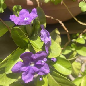 10 / 18 匂い蕃茉莉 yesterday today&tomorrow 老木でゴツゴツの 匂いばんまつり💜 先日 ノコギリで 切断したばかり(強剪定) 春 秋 と云わず よく咲いてくれる💜甘い香り 来春の若葉🌿が楽しみ…切り過ぎたかな😥