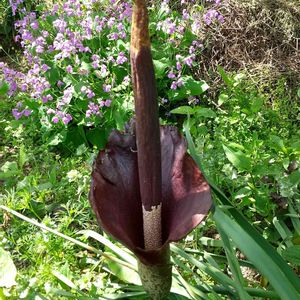 ビックリポン ! 久しぶりの花150㎝ 植えっぱなしのコンニャクに花 (追)かなり匂うよ😅