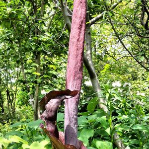小石川植物園の薬草園。 畑に、地面からニョッキリ咲いていて驚かされました。初見🎵でした。 ☆こんにゃくの花☆
