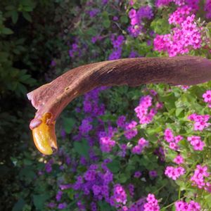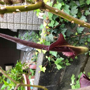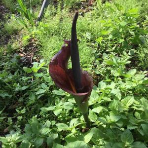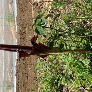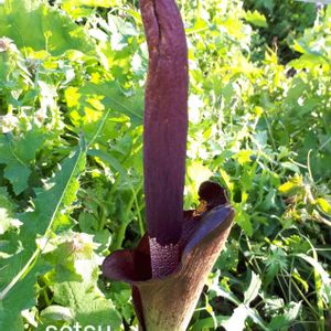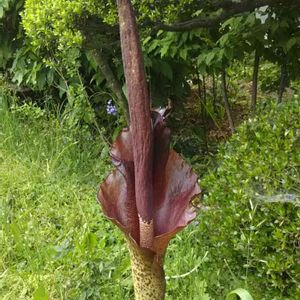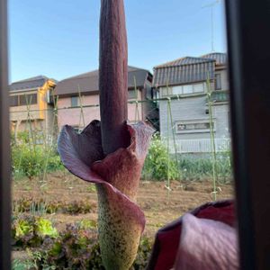 昨日、畑にニョロニョロ~と😰 一体何でしょうか··? 教えて頂きました (コンニャクの花) サトイモ科・コンニャク属
