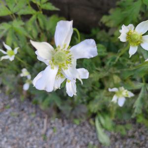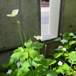 ハルザキシュウメイギク (春咲秋明菊) キンポウゲ科 イチリンソウ属 こぼれ種からあちらこちらに 白くて可愛いお花が咲いています