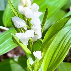 🏷白い水曜日♡ 🏷素敵な水曜日 🏷純白マニア 🏷山野草マニア ギンラン(銀蘭)🤍✨ ラン科 キンラン属 白い花を沢山つけひっそり清楚✨✨ 可愛かったです💓💕 先日の「ホウチャクソウ」と並び 一株だけ😅発見🎵 花言葉💐 『おとなしい貴婦人』