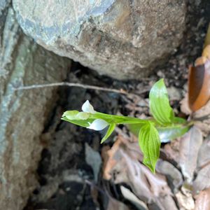 裏山シリーズ♪ 小さくて可愛い野生ランです(^^) 隣にもう一本咲いていたけど、葉っぱが茎にくっついてて何か変。 何これ?と引っ張ってみたら中から小さなイモムシが慌てて飛び出して逃げて行きました💦 これからサナギになるんだったのかな?イモムシさん邪魔してごめんね💦