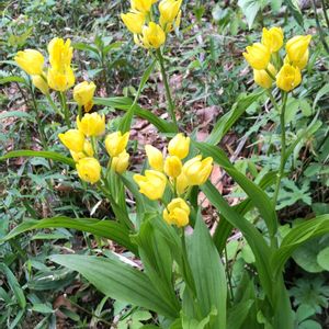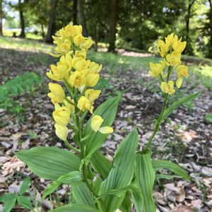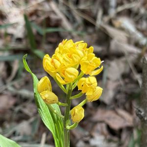 ギンリョウソウの近くに、保護観察 されているキンランが綺麗に咲いていました。😊👍🎶📸 保護されたいるのです、毎年株数を 増やしています。🤗 ギンリョウソウは逆に減っている感があります。😥