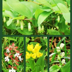 ①銀蘭/ギンラン 小さなギンランに木漏れ日のスポットライト✴️ ②雪笹/ユキザサ 咲き始めꕤ