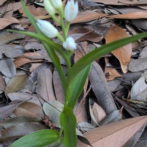 ギンラン。 筑波植物園でキンランはよく見るのですが、ギンランは初めてみました。林の中で、キンランもギンランも育っているようです。