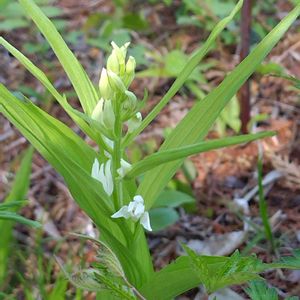 〜ギンラン〜 ラン科キンラン属 花言葉⇒おとなしい貴婦人 🏷️白い貴婦人✨ 🏷️花咲く乙女たち♡ 🏷️2021年同期の会NO.9 実家の近所の散歩 ギンラン二株見つけました。.:*♡🤍🌿