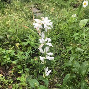 散歩中の林の中で 銀蘭がぽつぽつと咲いていました( •∀︎•` )